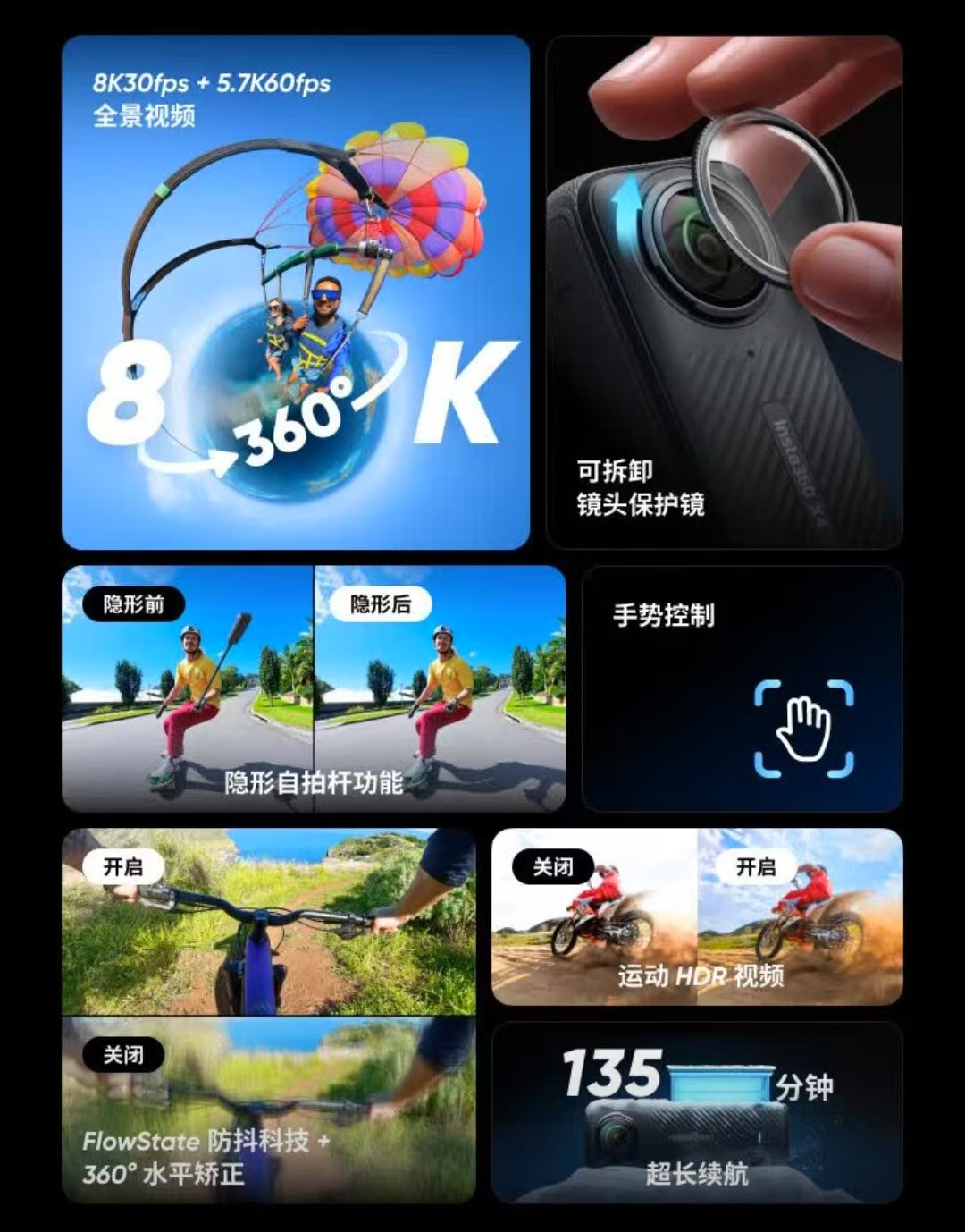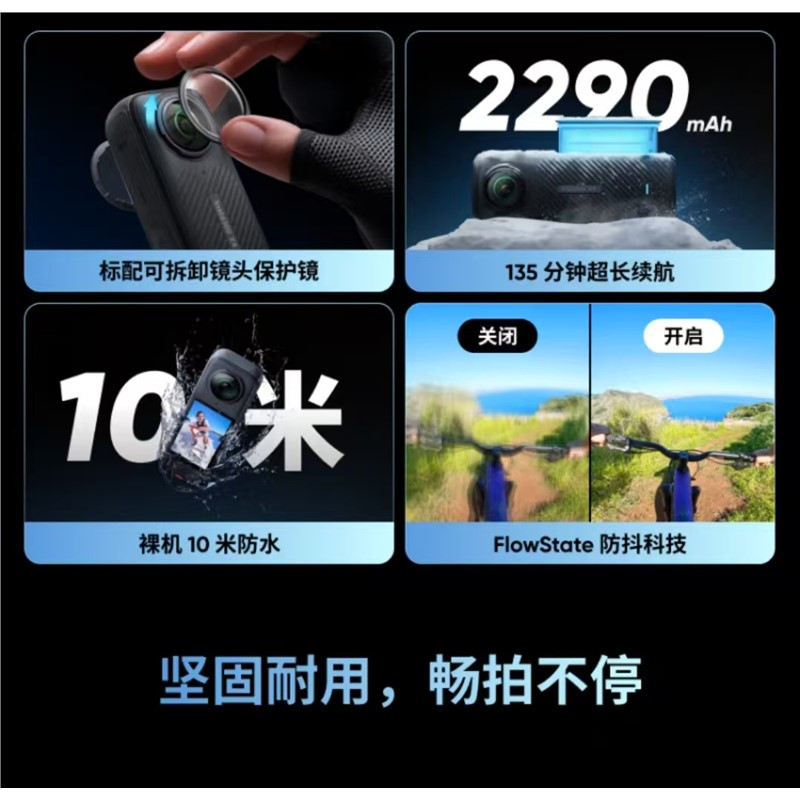 影石(Insta360)X4 小型数码相机 全景运动相机8K高清防抖防水摄像机Vlog(骑行套装128G卡带大力夹)